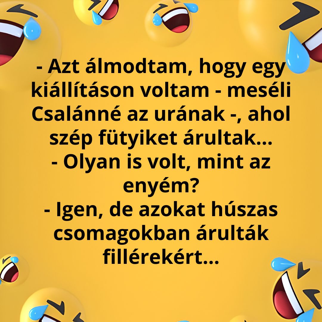 Vicc a házaspárról, akik beszámolnak egymásnak a pikáns álmaikról.