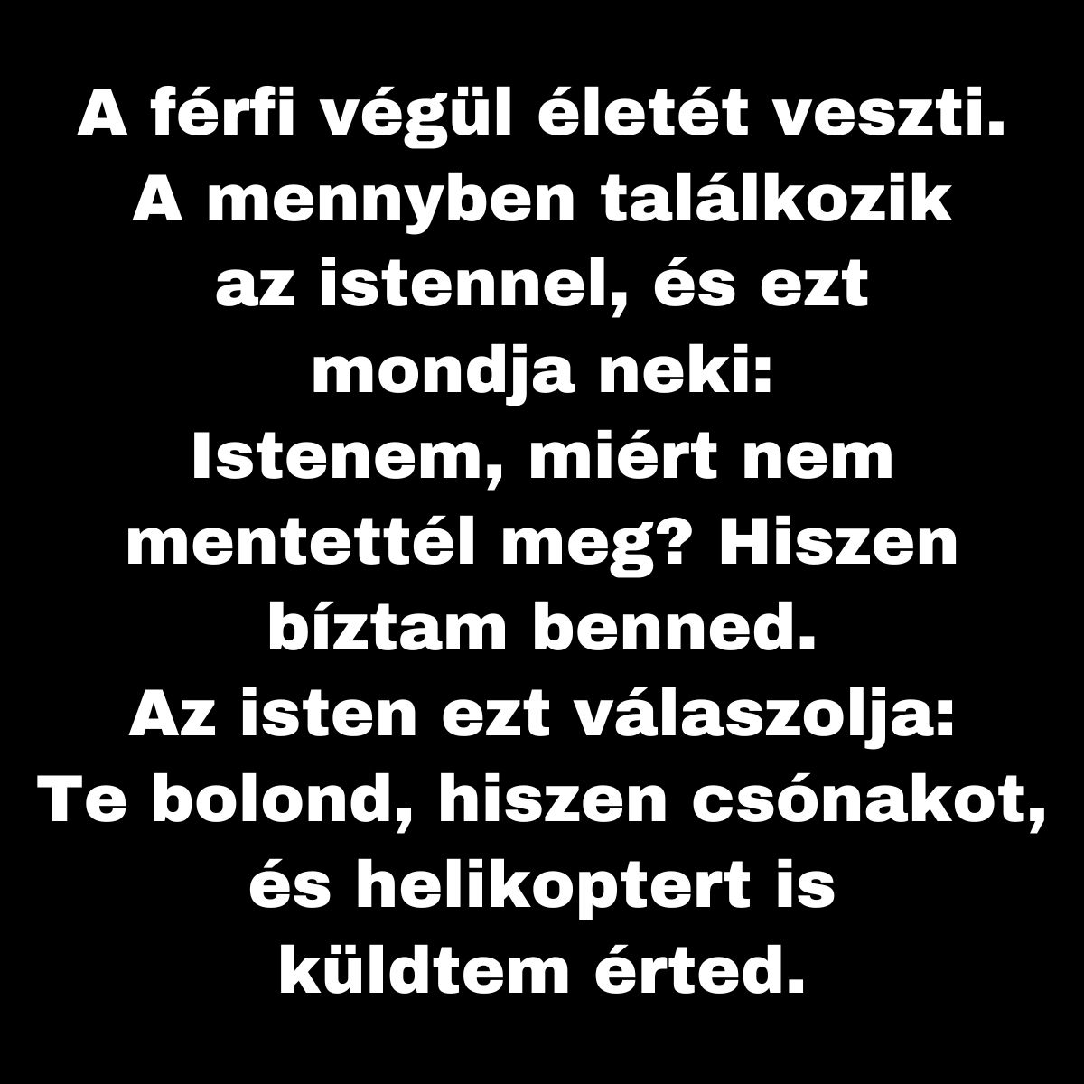 A férfi elutasítja az árvíz idején, hogy a mentőcsónakba üljön (Vicc)