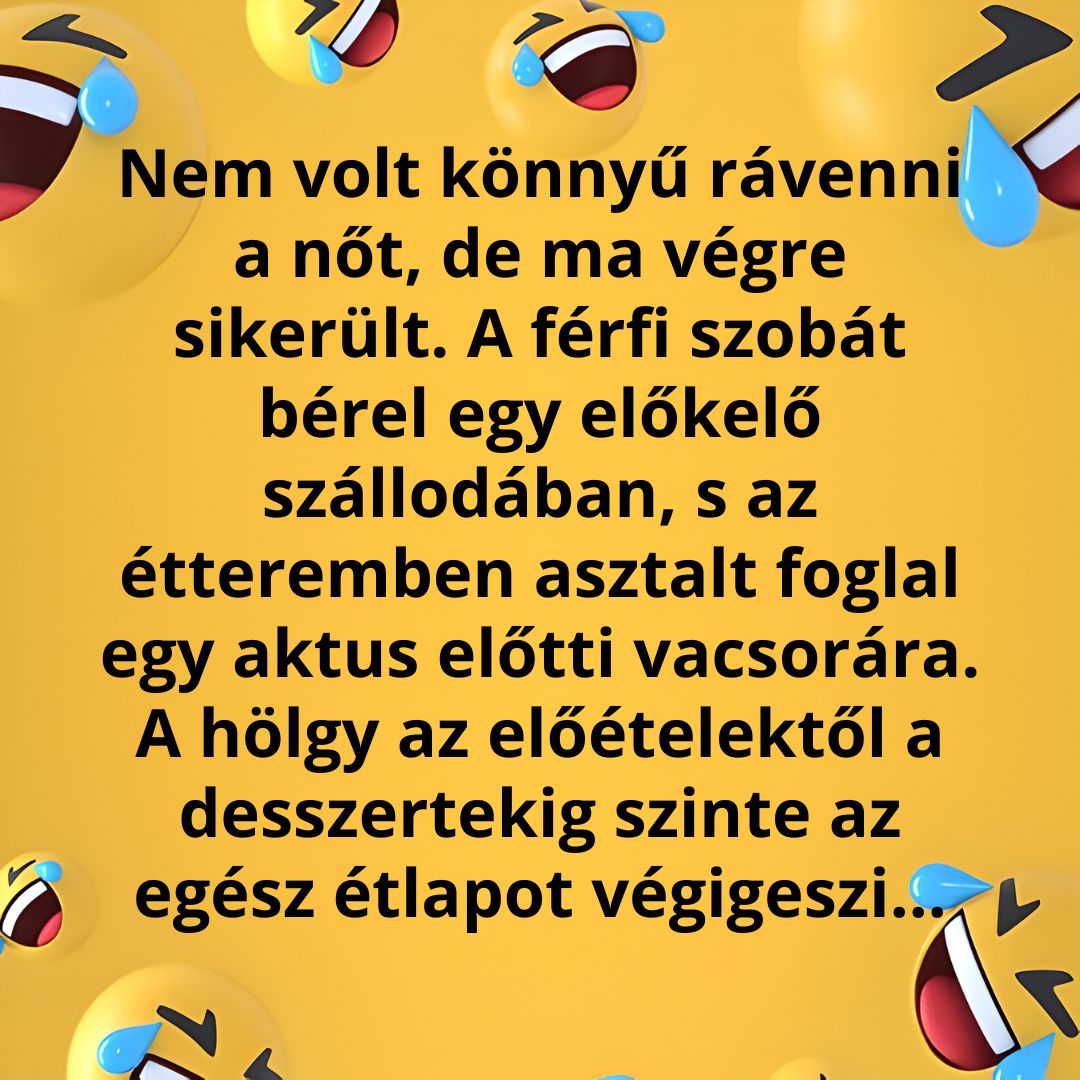 Vicc a férfiról, aki le akar fektetni egy nőt, és mindent bevet, hogy sikerüljön.