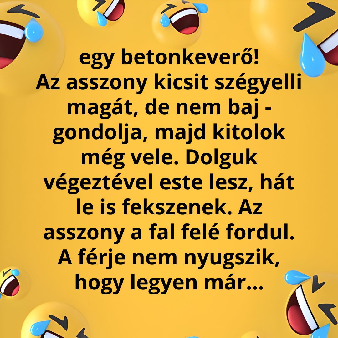 A férj betonkeverőhöz hasonlítja a feleség fenekét (Vicc)