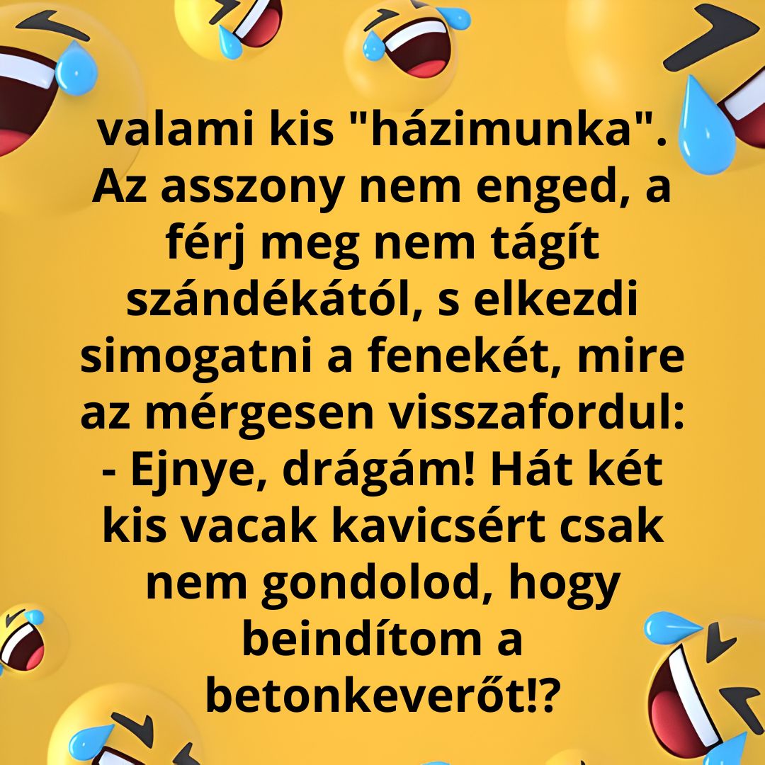 A férj betonkeverőhöz hasonlítja a feleség fenekét (Vicc)