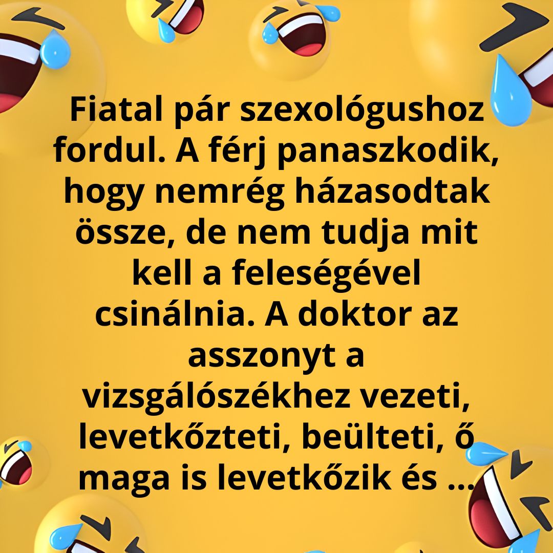 A fiatal férj a szexológustól kér tanácsot (Vicc)