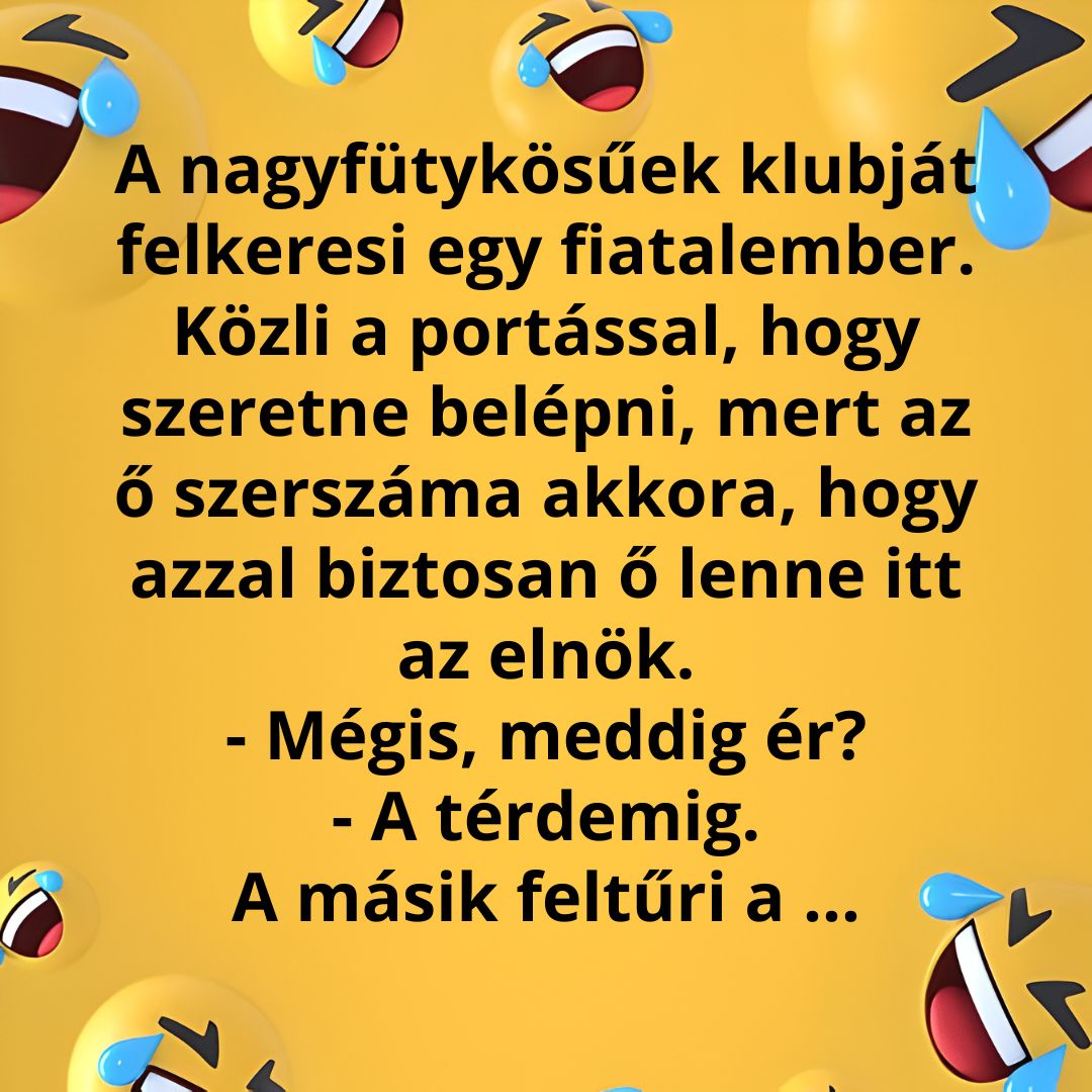 Vicc a fiatalemberről, akinek nagy a szerszámja, és klubelnök szeretne lenni.