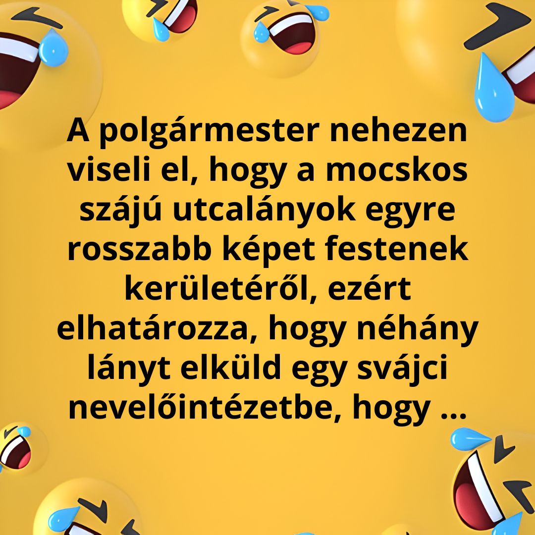 Vicc a polgármesterről, aki Svájci nevelőintézetbe küldi az utcalányokat.