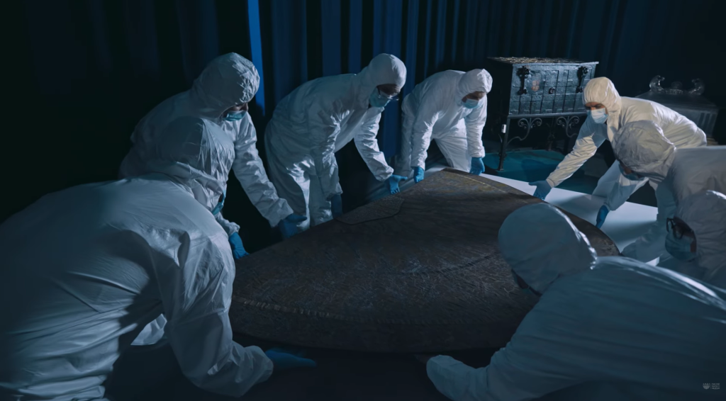 A magyar történelem egyik legfontosabb darabját védőruhában és kesztyűben emelték ki a vitrinből