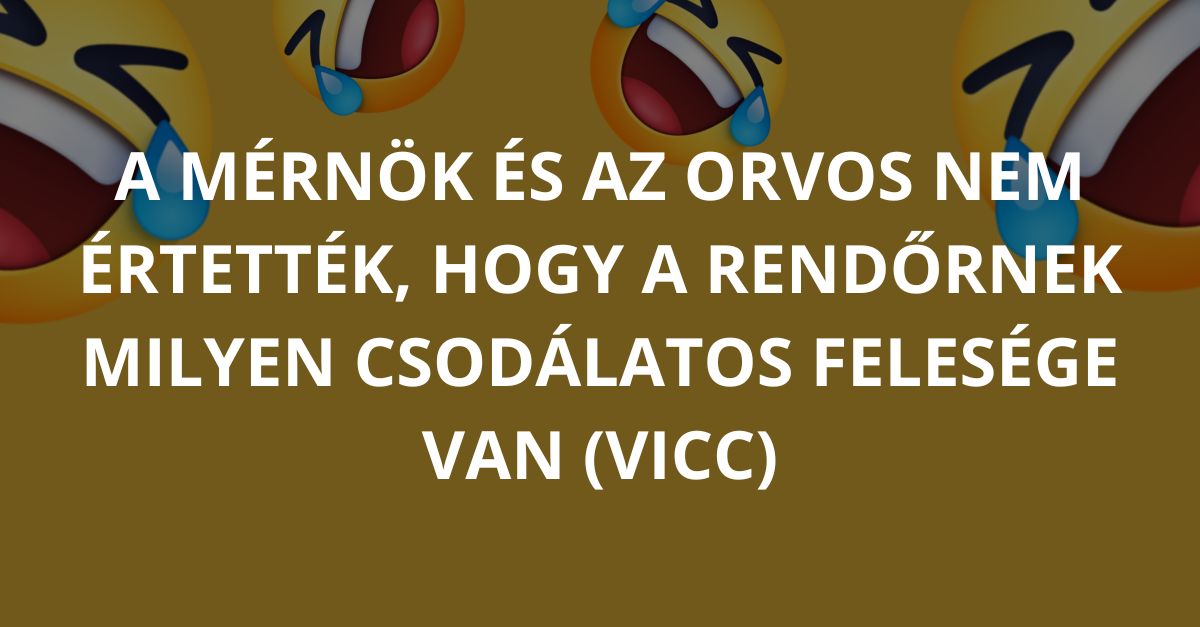 A mérnök és az orvos nem értették, hogy a rendőrnek milyen csodálatos felesége van (Vicc)