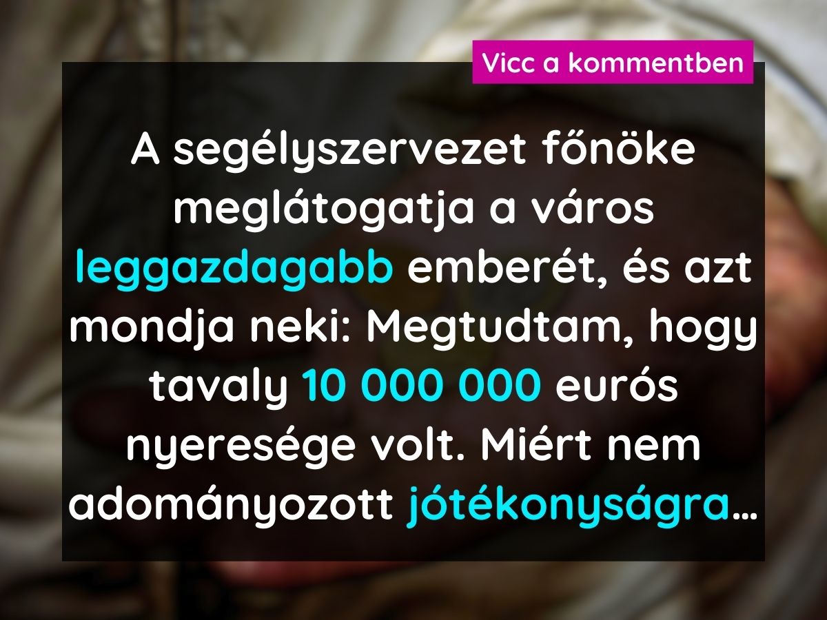 A segélyszervezet főnöke meglátogatja a város leggazdagabb emberét (Vicc)