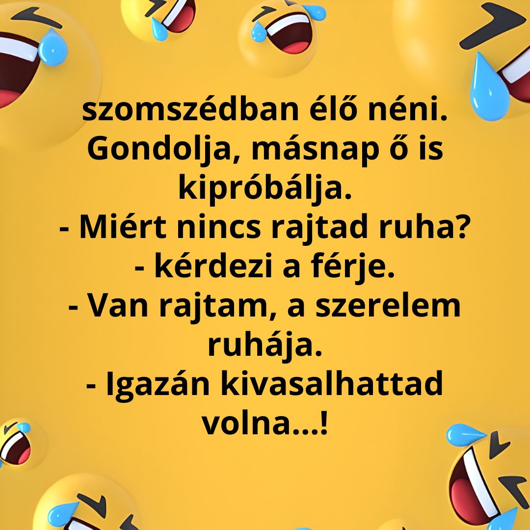 Vicc a néniről, aki ki akarja próbálni a szerelem ruháját.