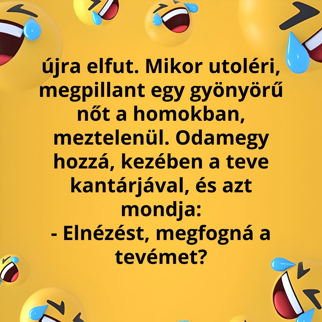 Vicc a tevehajcsárról, aki a sivatagban megpillant egy gyönyörű nőt.