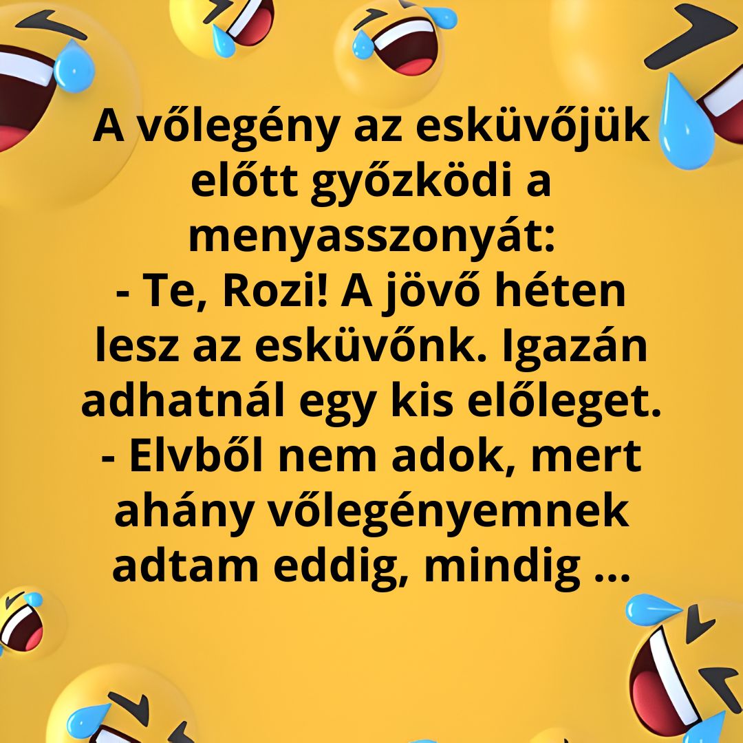 Vicc a türelmetlen vőlegényről, aki előleget kér a menyasszonyától.