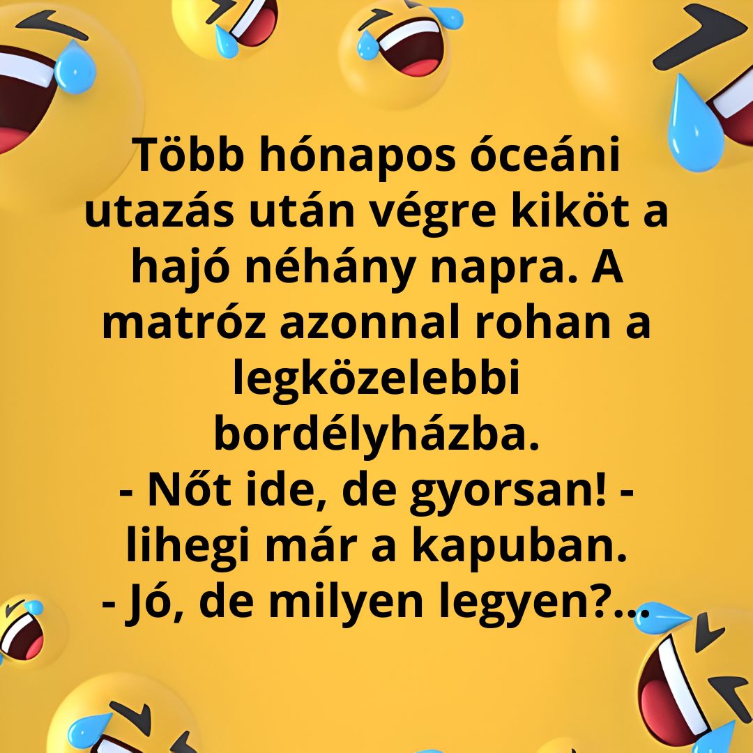 Vicc a matrózról, aki a hosszú tengeri út után ki van éhezve.