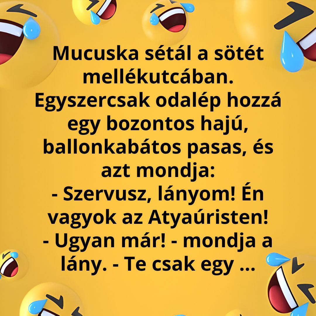 Vicc Mucuskáról, aki meglepődik egy mutogatós pasi méretén.