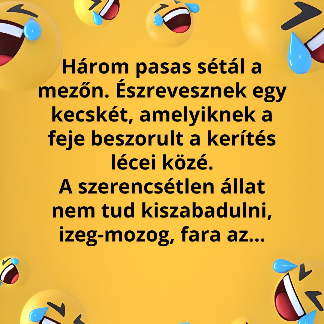 Vicc a három férfiról, akik begerjednek egy kecske láttán.