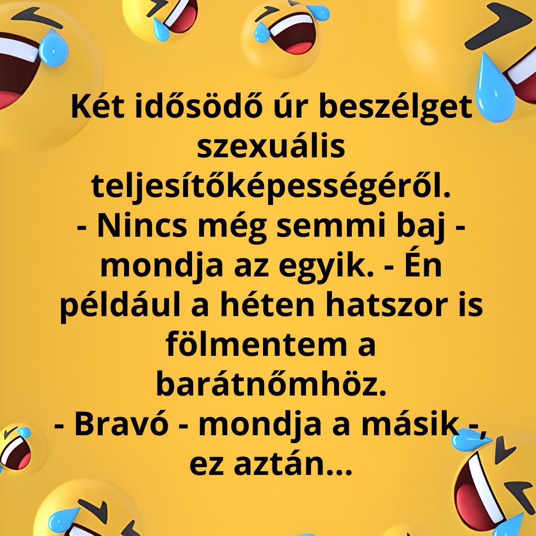 Vicc az öregurakról, akik a szexuális teljesítőképességükről dicsekednek.