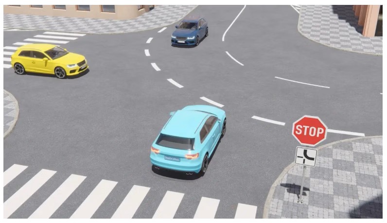 A főúton haladóknak mindig elsőbbségük van. Ha pedig két mellékútról érkező jármű találkozik, egymás között a jobbkéz-szabály dönt, függetlenül attól, hogy az egyik oldalon STOP, a másikon pedig „Elsőbbségadás kötelező” tábla van.