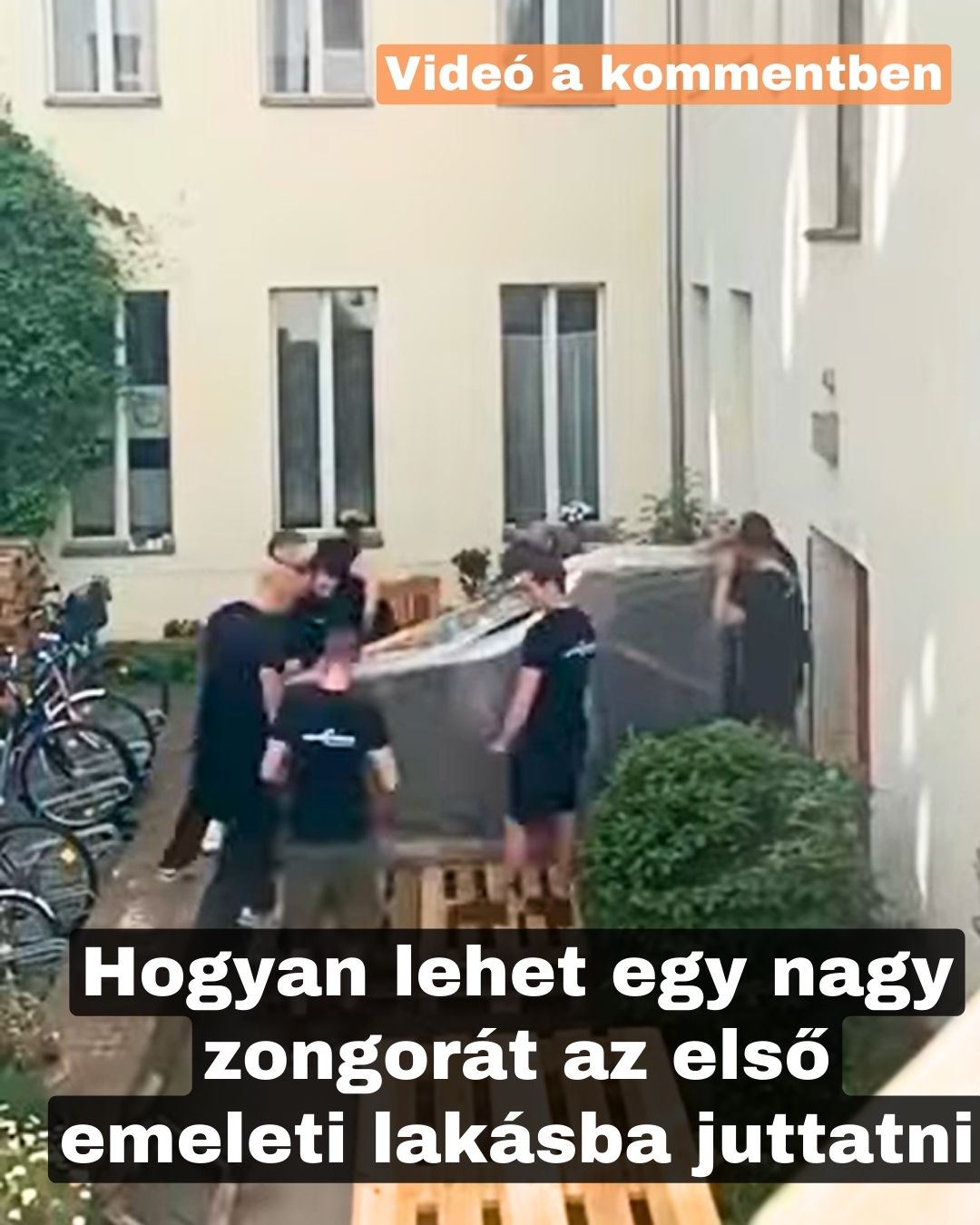 Egy csapat srácnak az volt a feladata, hogy egy zongorát kézbesítsen egy első emeleti lakásba. Bárki, aki már költöztetett nagyobb tárgyakat, tudja, hogy azok gyakran nem férnek be a liftbe, és gondot okozhat a kanyarodás a dolgokkal a lépcsőházban, még kisebb tárgyak esetében is, mint amilyen például egy zongora. Így a srácok kitalálták a saját módszerüket, amely nagyon működőképesnek bizonyult.