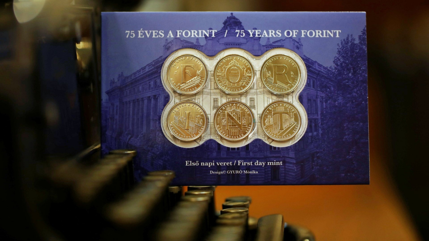 Ezek az 75. évfordulóra készült különleges ötforintos érmék, megfelelő sorrendbe helyezve, a FORINT szót formálják, illetve mozaikként a Magyar Nemzeti Bank Szabadság téri székházát jelenítik meg.
