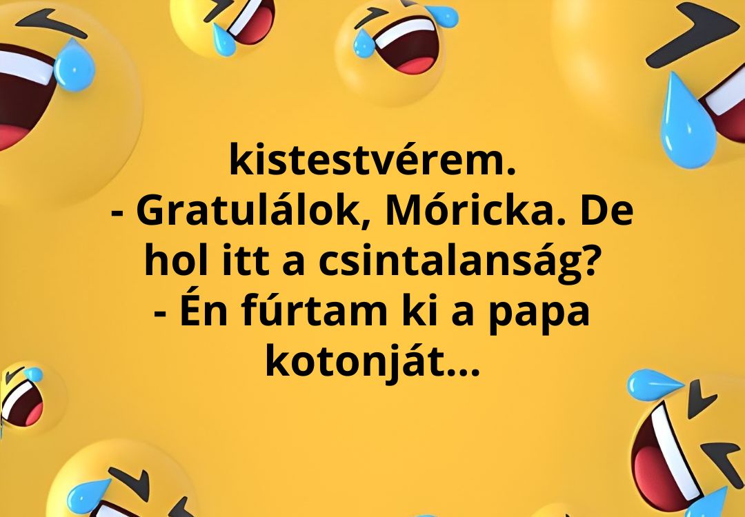 Vicc Mórickáról, aki elmesél egy csintalanságot az órán.