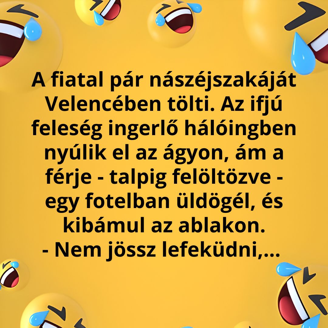 Vicc a bamba férjről, aki félreérti a nászéjszaka fogalmát.