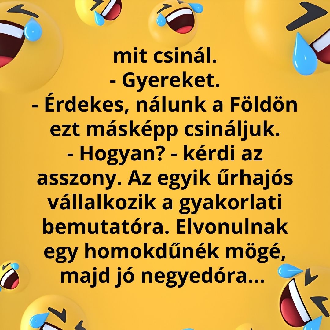 Vicc az asztronautákról, akik megmutatják a Marsbéli asszonynak, hogy a Földön hogyan csinálnak gyereket.