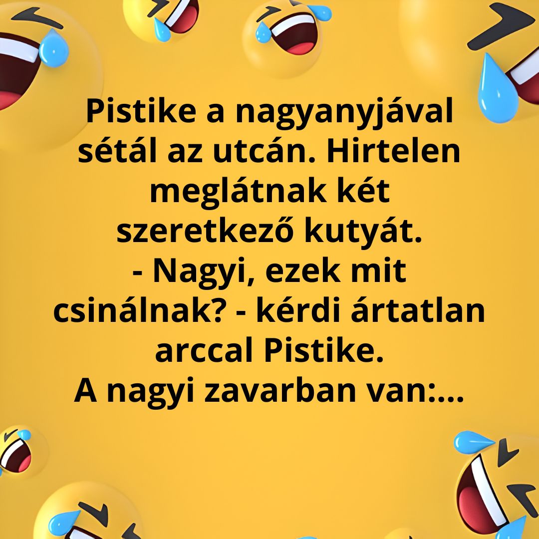 Vicc Pistikéről, aki szeretkező kutyákat lát az utcán.