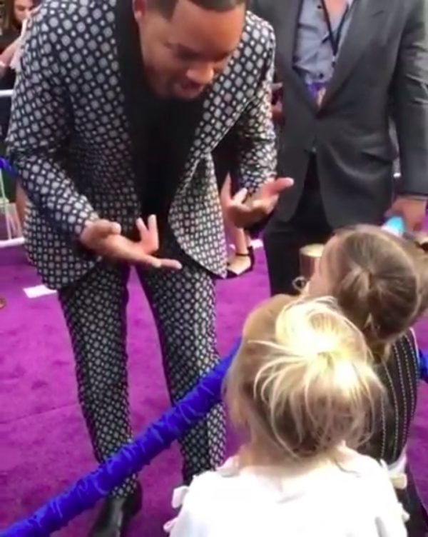 A két kislány, Mila és Emma szóba elegyedett Hollywood egyik legnagyobb sztárjával, akiről süt, hogy van gyereke (két fiú és egy lány). Smith nemcsak időt szakított rá, hogy diskuráljon a kicsikkel, de rögvest a vörös szőnyegre hívta őket, hogy találkozzanak Jasmine hercegnővel, vagyis Naomi Scott-tal.
